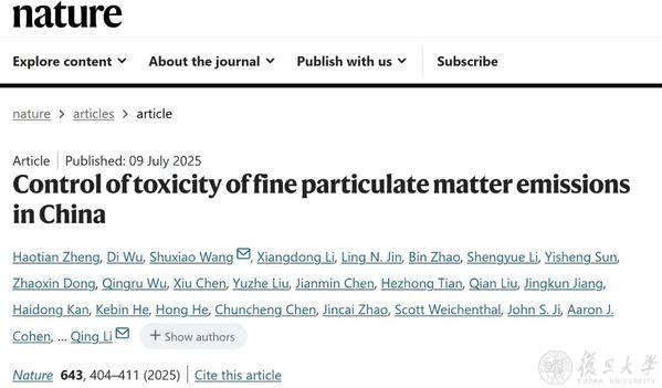 北京时间7月9日晚,该合作团队以“中国细颗粒物排放的毒性控制”(Control of toxicity of fine particulate matter emissions in China)为题发表于Nature(《自然》)杂志。