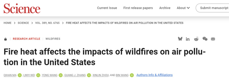 以“Fire Heat Affects the Impacts of Wildfires on Air Pollution in the United States(火释放的热量影响美国野火空气污染)”为题